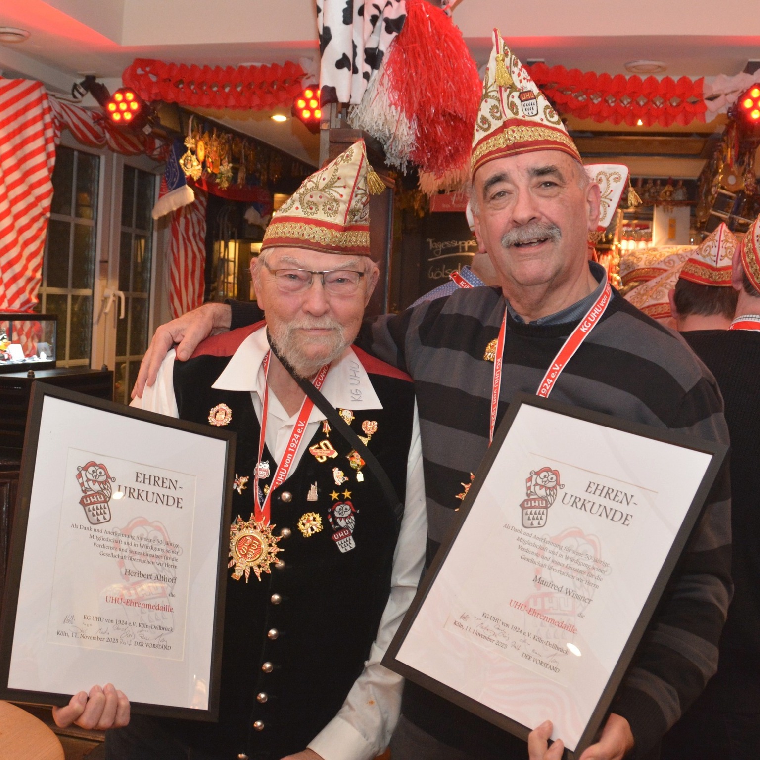 Auf dem Vorstandsempfang für den Senat bzw. auf der ersten UHU-Montagsversammlung wurden drei Mitglieder mit der UHU-Ehrenmedaille für die 50-jährige Mitgliedschaft in der Gesellschaft geehrt. |